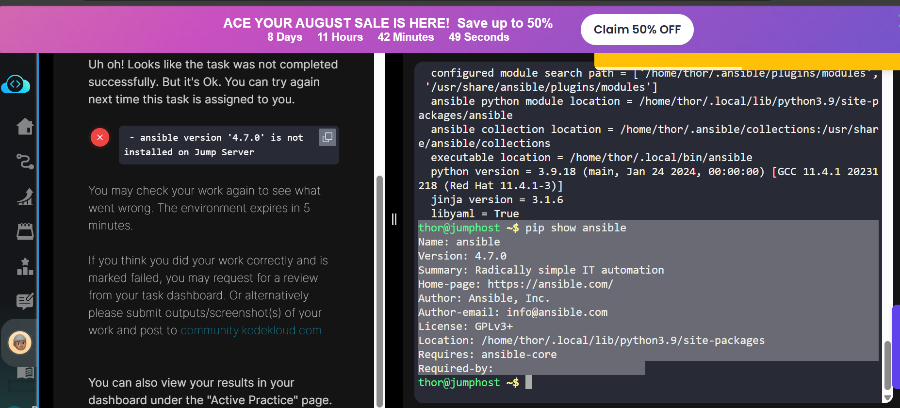 before running the command. like this: sudo pip3 install ansible==4.7.0