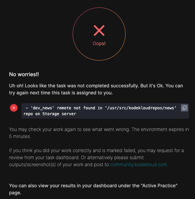 This indicates you didn’t do the necessary – you’ve created a branch “dev_news” on the “origin” remote. The task asks you to create a new remote of dev_news that points to a different upstream repo. If you do the task correctly, you’d have gotten output that looked more like “dev_news/master”, since you’re pushing the modified master branch to the remote you needed to create with git remote add dev_news UPSTREAM.