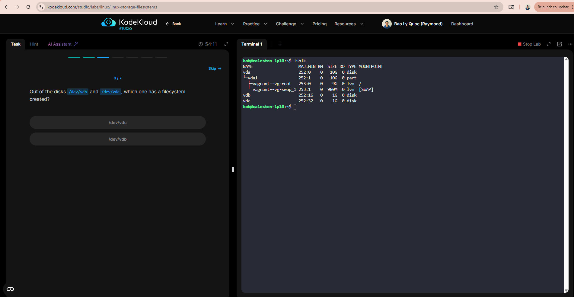 From Step 4, you need to answer questions about /dev/vdd, but it doesn’t exist