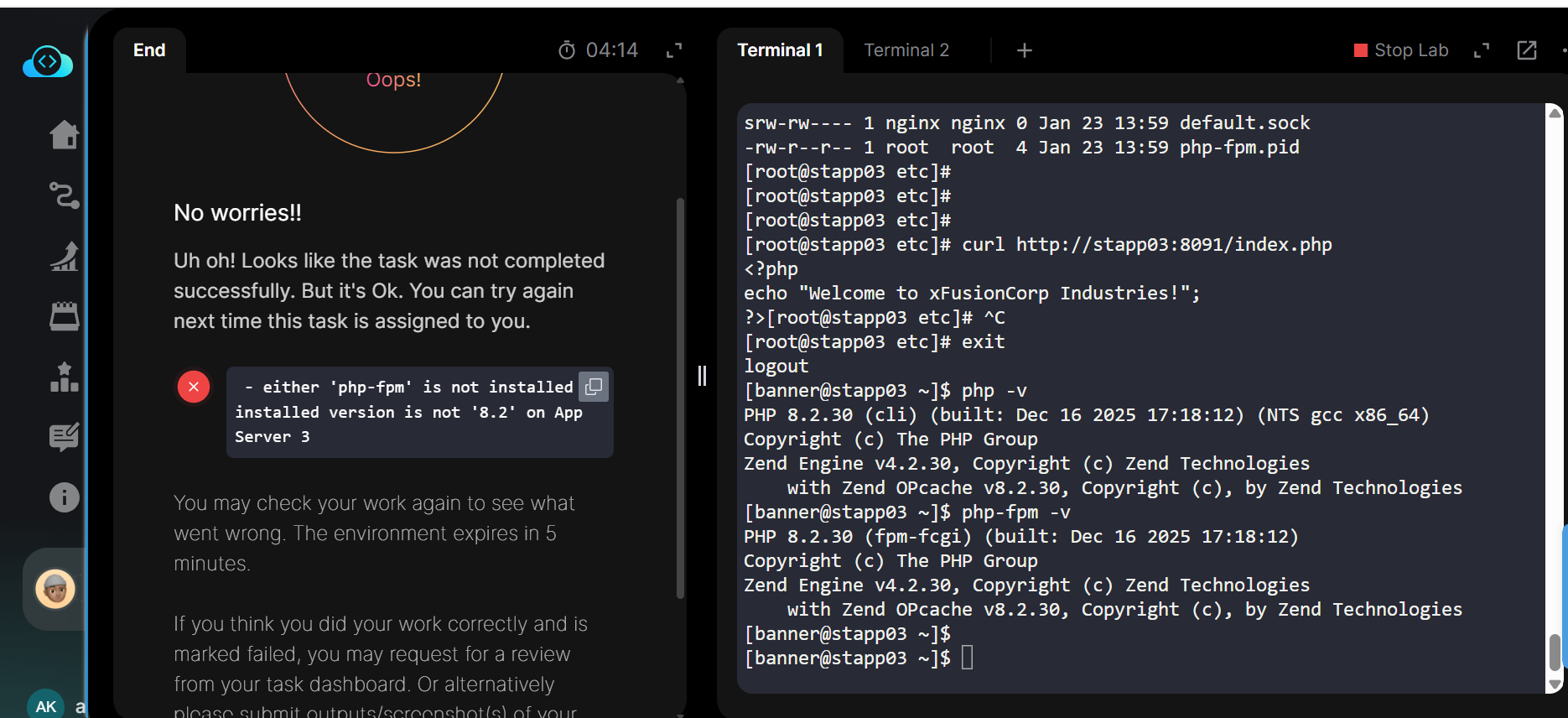 Can someone please help me why I am task is still failing even after install right php-fpm version on the mentioned server.