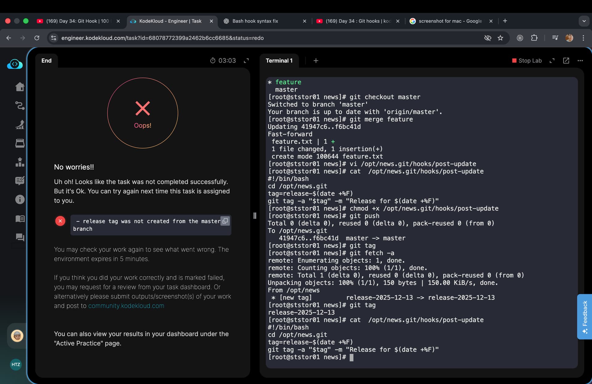 I’m facing an issue in the Devlops 100 Days - Day 34 Git hooks.