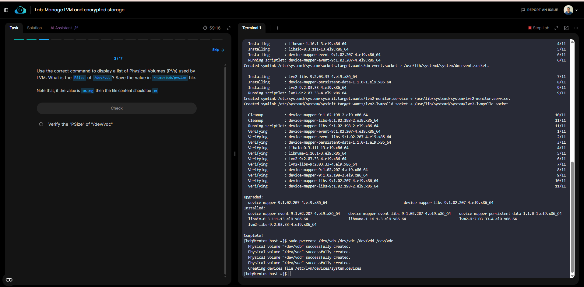I’ve encountered a problem displaying commands in the terminal in almost all the RHCSA training labs. I type the commands, but nothing appears. I’ve tried copy/pasting, but the problem persists.