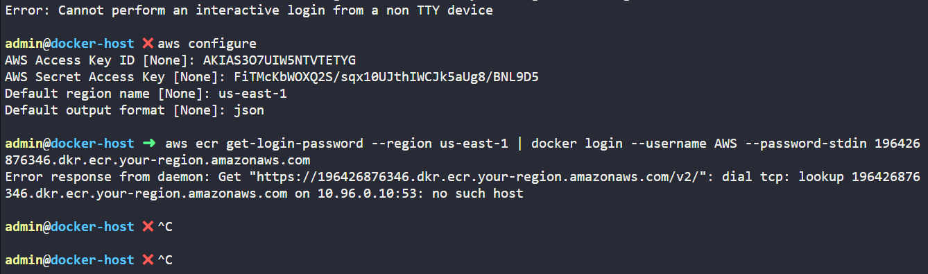 Why are you trying to log in to a location at your-region.amazonaws.com? There is no such region as your-region which is why DNS is telling you no such host.