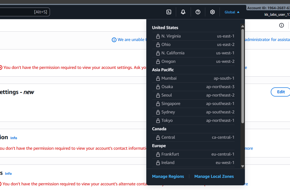 In Aws COnsole , None of the regions get enabled to select when we are in the IAM Page .