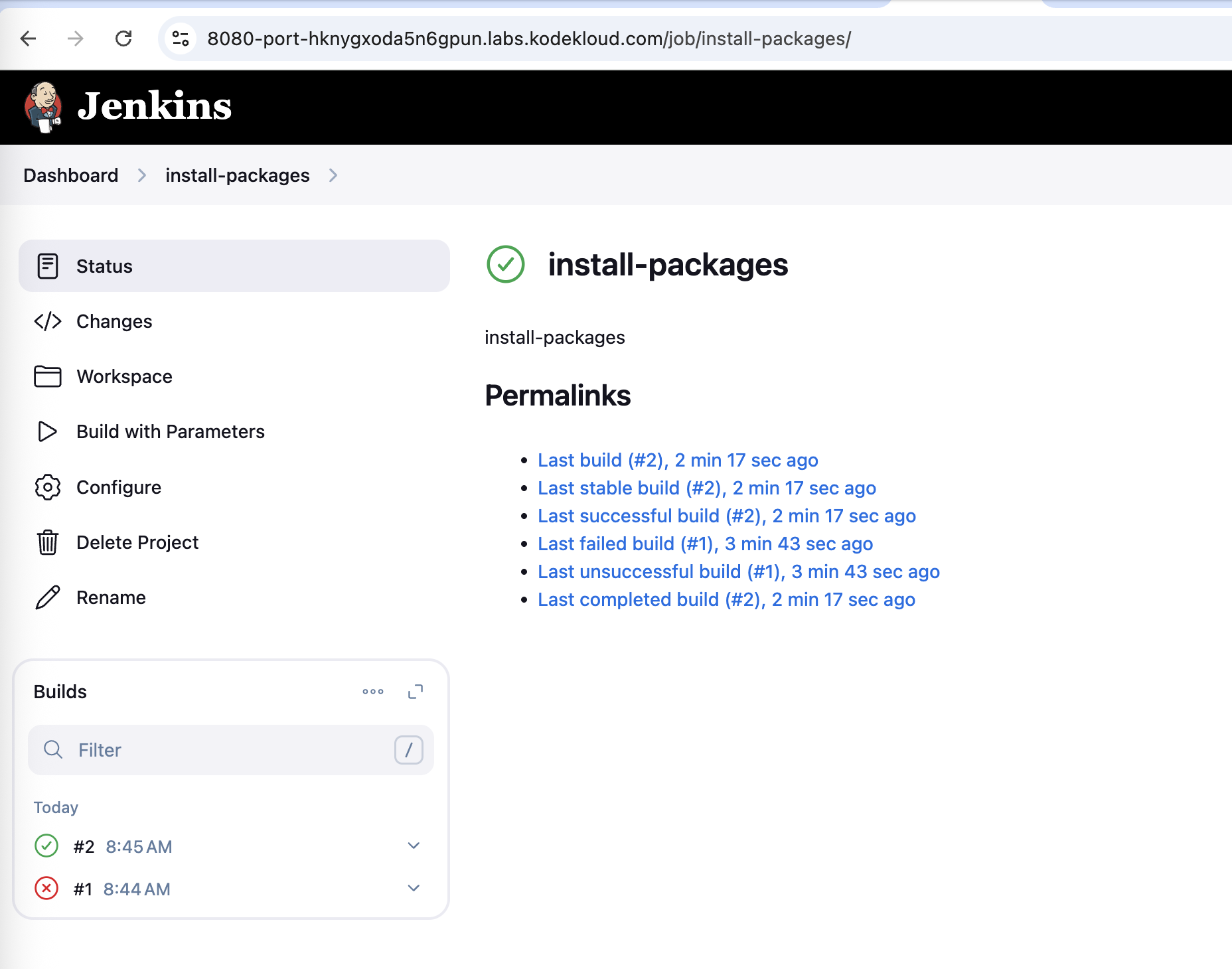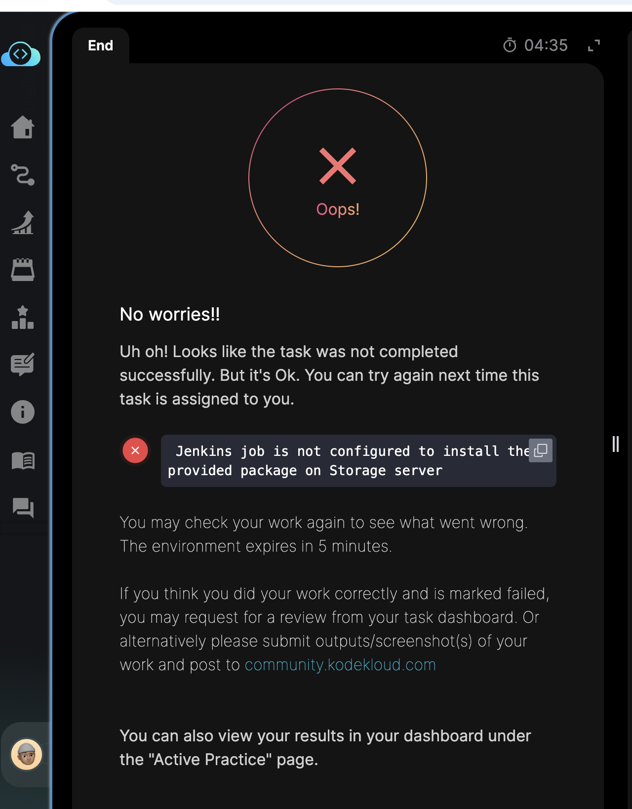 The pipeline works, it is successful, and it installs the $PACKAGE on the Storage server, but the exercise is marked as Not passed. Could you please explain me why or what is expected?
