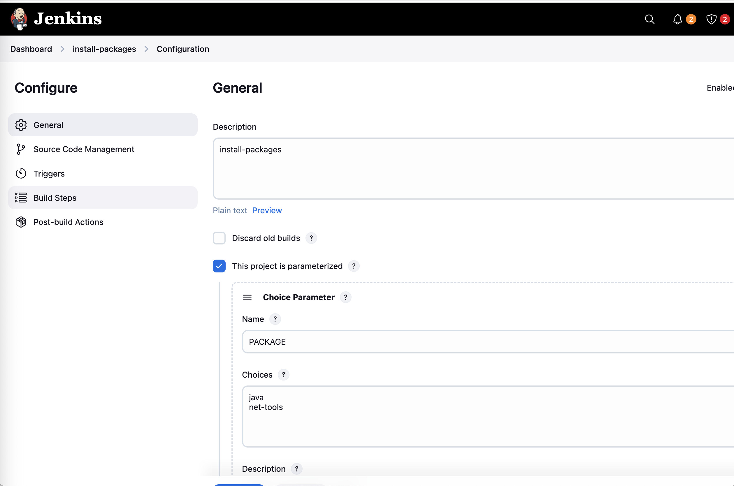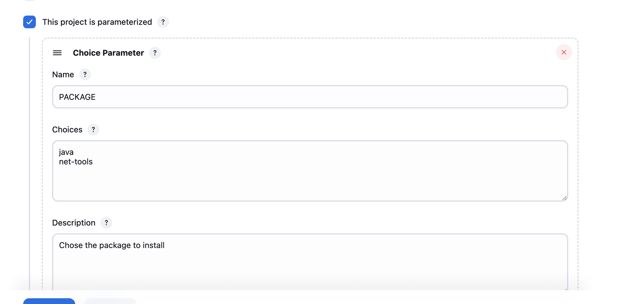 For testing purposes I just wrote “java” and “net-tools” as choices in the pipeline.