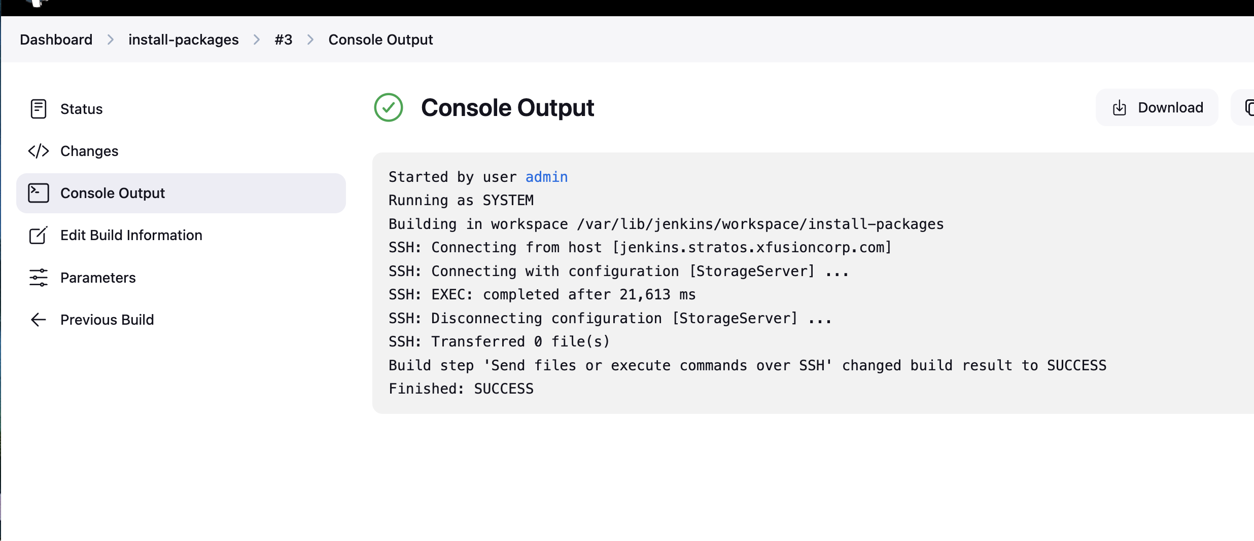 I created the job in Jenkins to connect to the Storage server (ssh [email protected]) and install a package there.
