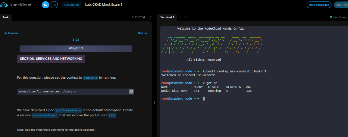 We have deployed a pod pod22-ckad-svcn in the default namespace.