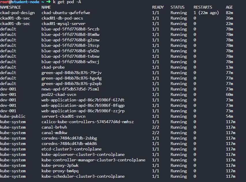the pod should be in the default namespace, but when you get all pods from all namespaces, the pod is in the namespace pod22-ckad-svcn