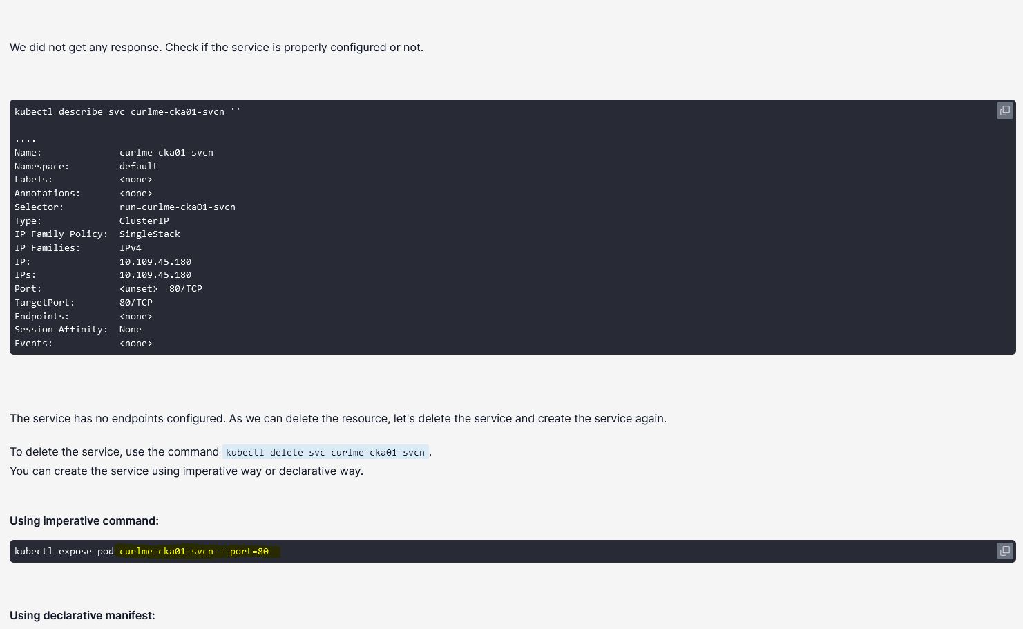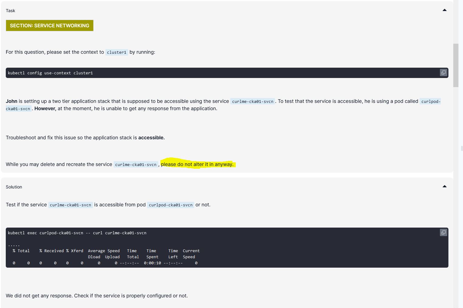 It says: " While you may delete and recreate the service curlme-cka01-svcn, please do not alter it in anyway."