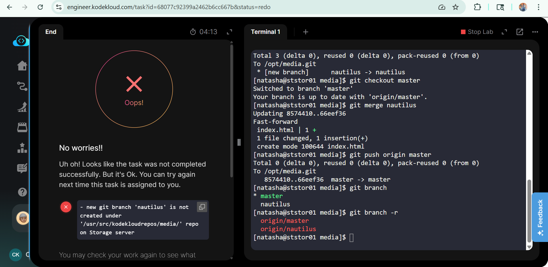 "new git branch ‘nautilus’ is not created under the repo