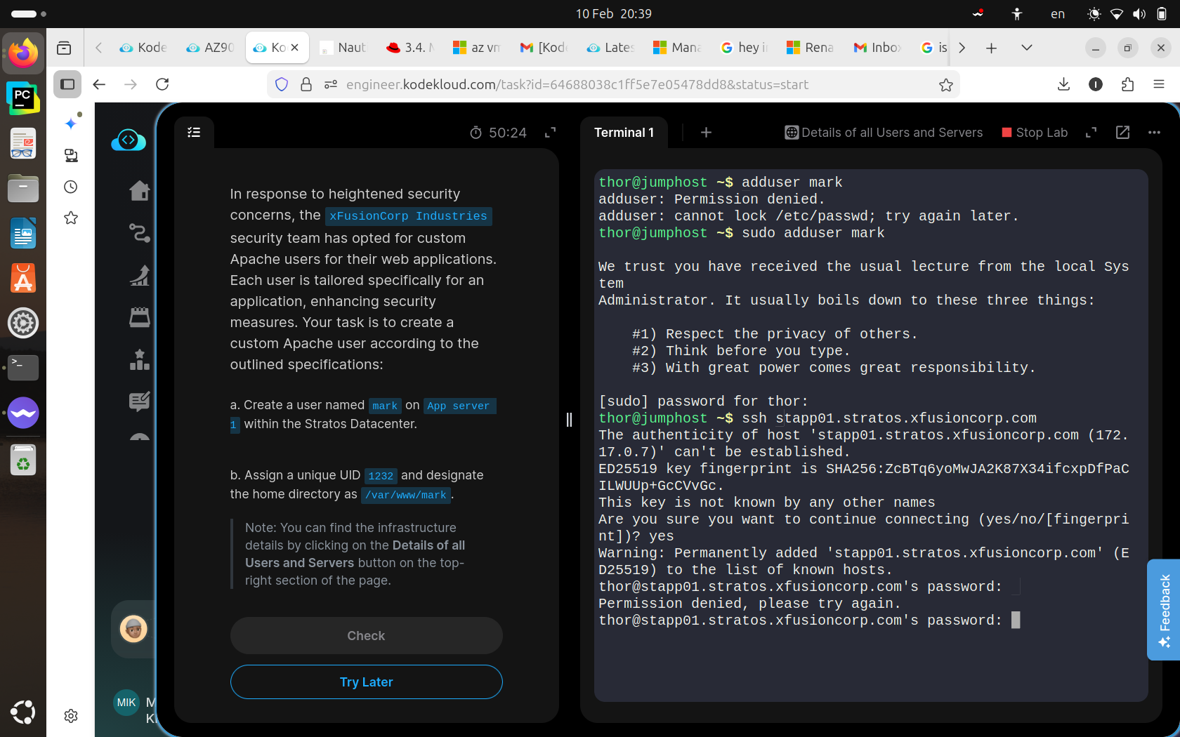 Im in day1 linux , the problem im encountering is after i ssh into an app-server as it instructs ,