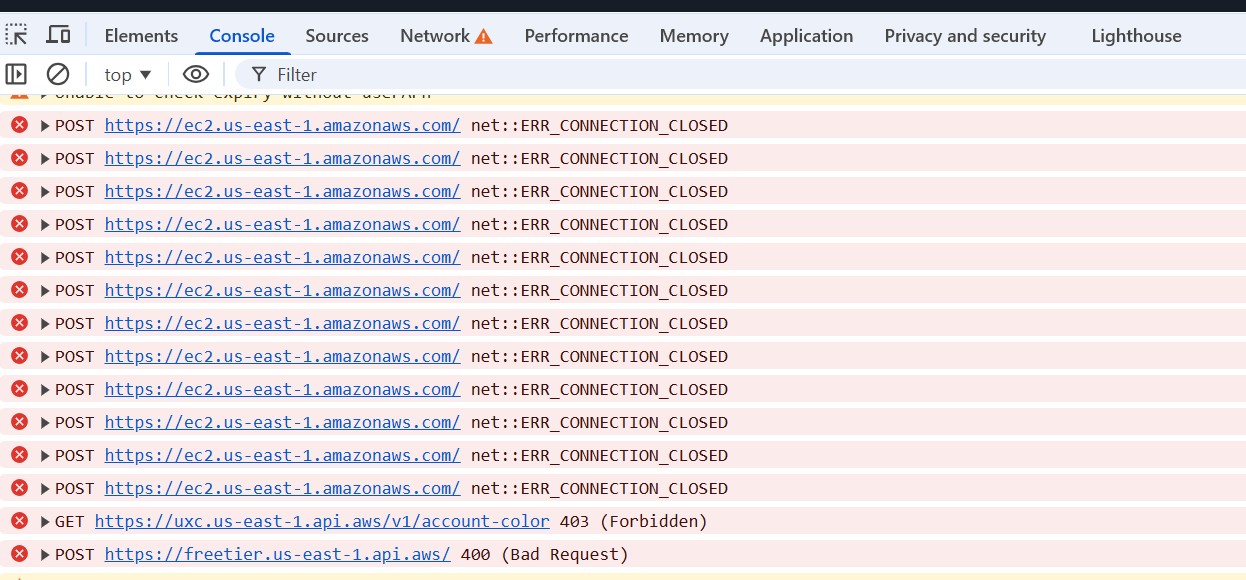 In particular, check your privacy browser extensions or security firewalls, they might be blocking access to the domains used by the AWS Management Console. Try turning off these extensions or adjusting firewall settings.