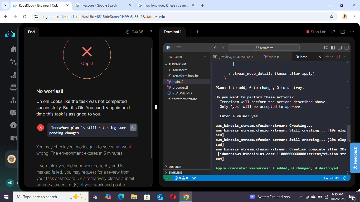 @mmumshad and everyone, I keep getting this error when i run my check for task submission “Terraform plan is still returning some pending changes.” please i need help, to continue my practice.