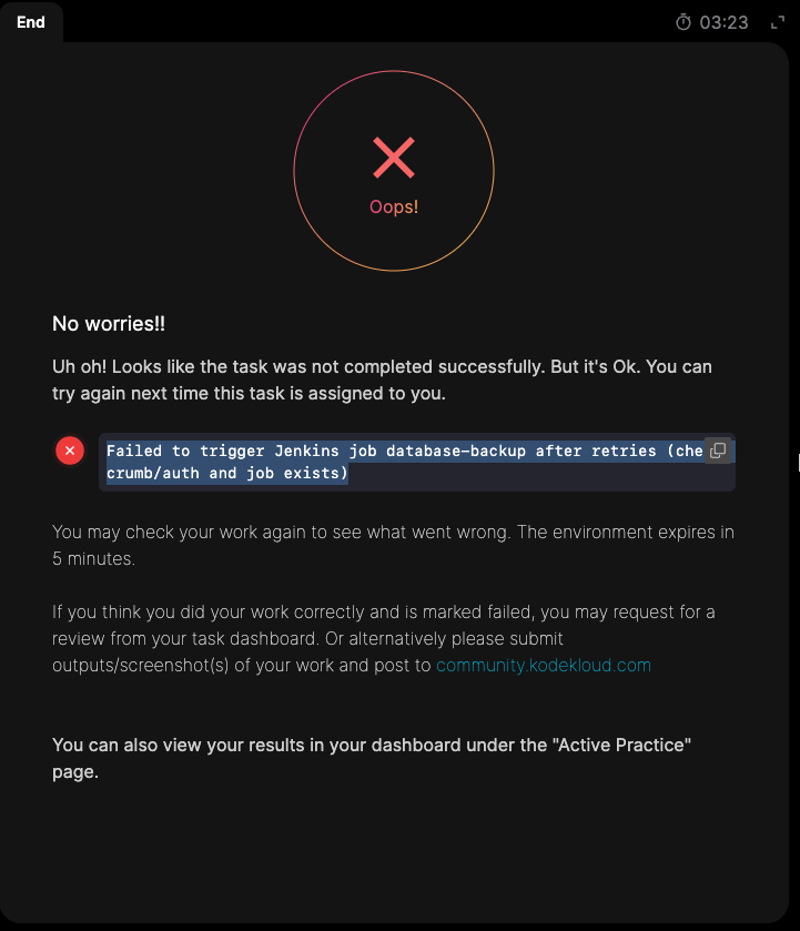 I have attempted this task many times, and although the check status returns a failed status, For me when I check the Application Server 1 (stapp01) and the Storage server (ststor01), the .SQL file is present. (I saw some of the question use different server).