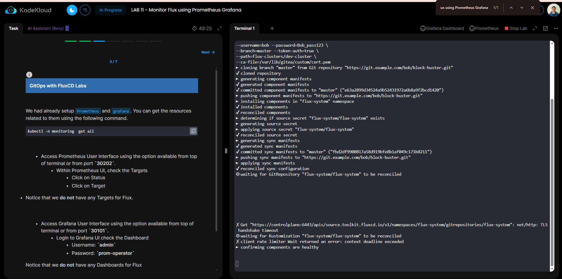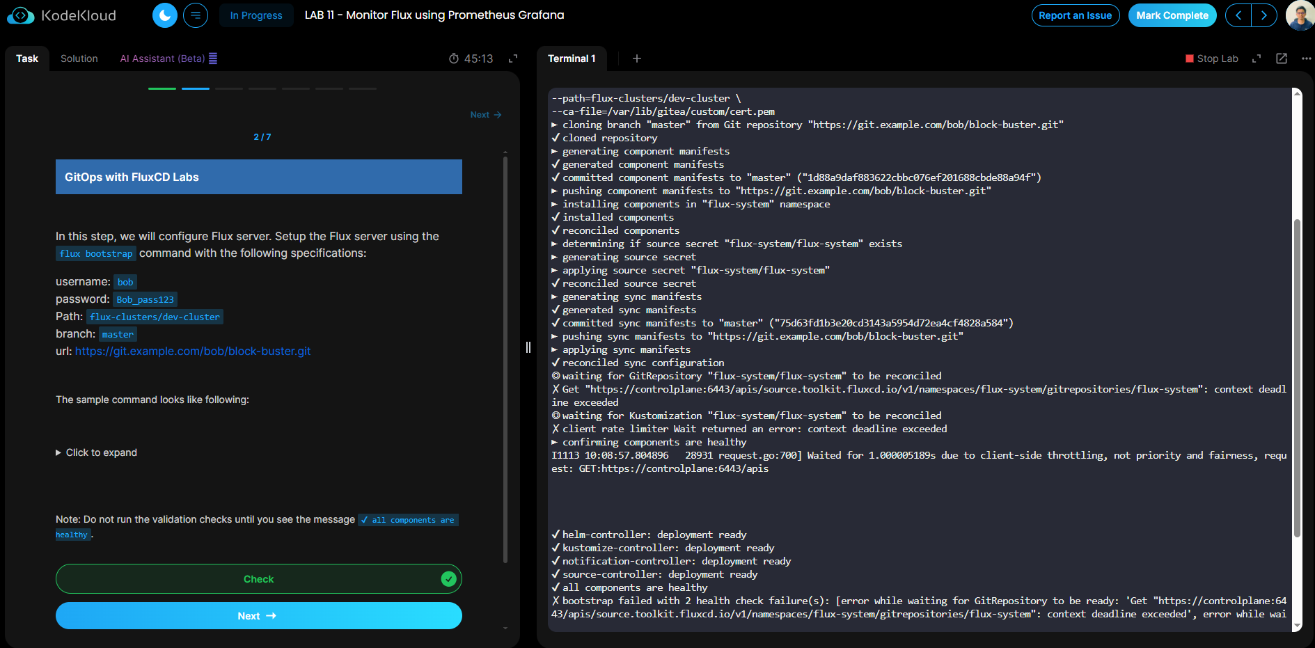 While accessing the lab mentioned above, facing the issue during bootstrap of flux server with git.