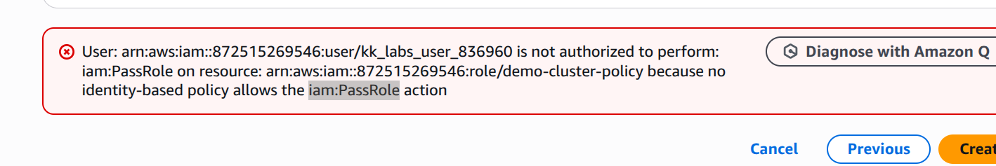 User: arn:aws:iam::585008062605:user/kk_labs_user_555018 is not authorized to perform: iam:PassRole on resource: arn:aws:iam::585008062605:role/codedeploy-ec2-role because no identity-based policy allows the iam:PassRole action
