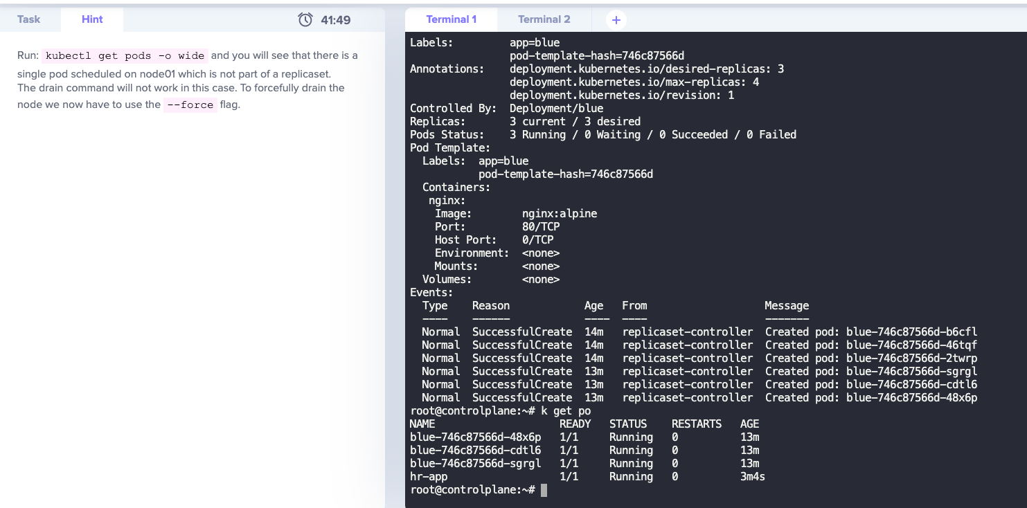 So here when you drain the node, you would lose the pod hr-app permanently.