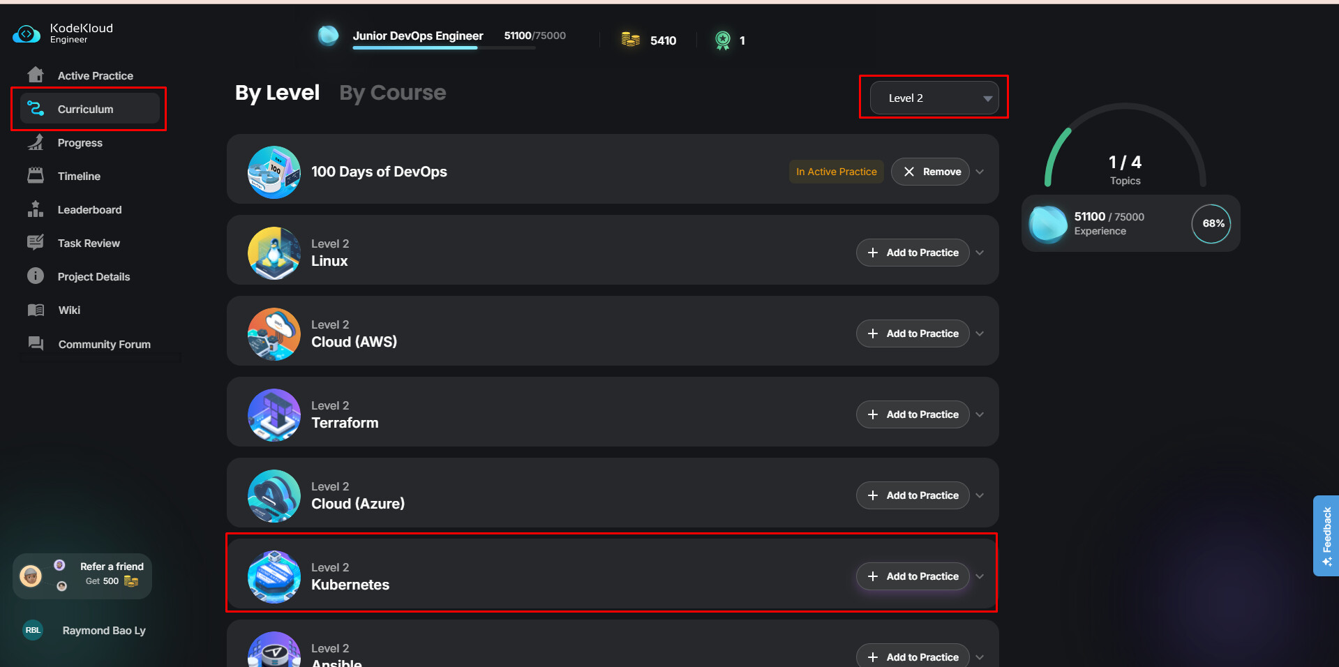 Hi, before taking subscription I have done kubernetes Level 1 course and I am rally satisfied with that and taken a subscription for one year, Now I am looking to do Level 2 kubernetes but I am unable to find it, can you help me please.