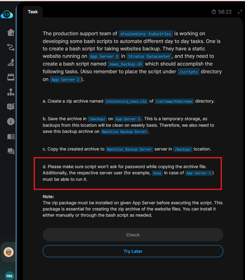 d. Please make sure script won’t ask for password while copying the archive file. Additionally, the respective server user (for example, tony in case of App Server 1 ) must be able to run it.