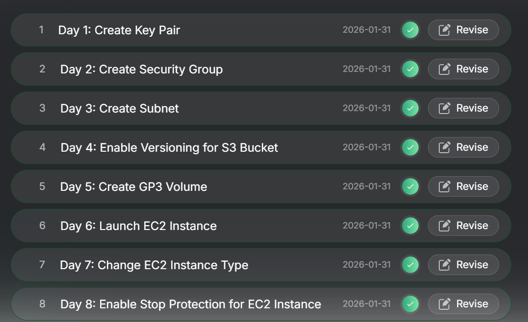 Multiple tasks in events (such as "100 days AWS, Devops etc) available if you pass a day or two, so you’ll get tasks as much as qty days you passed, but anyway you have to be solve tasks one by one.