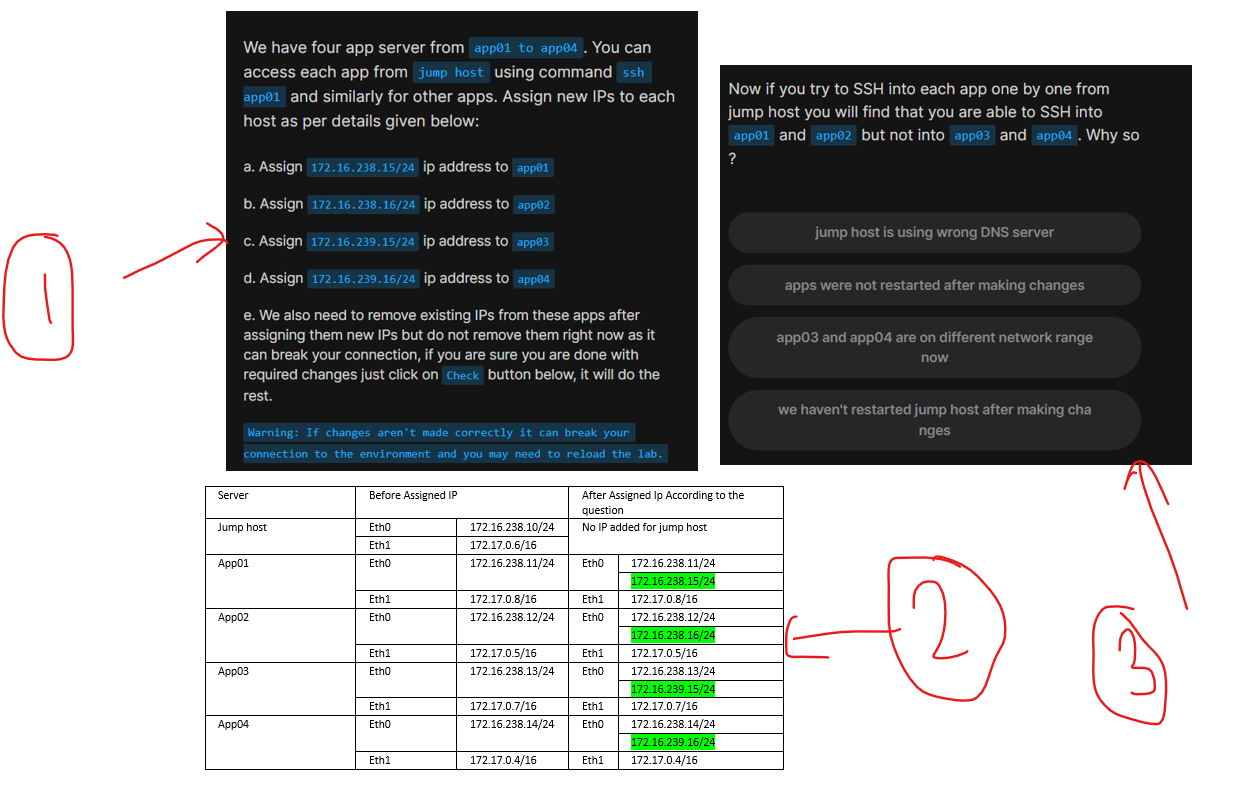 after that i followed the steps and i completed the question successfully, below table show how ips are assigned to each app