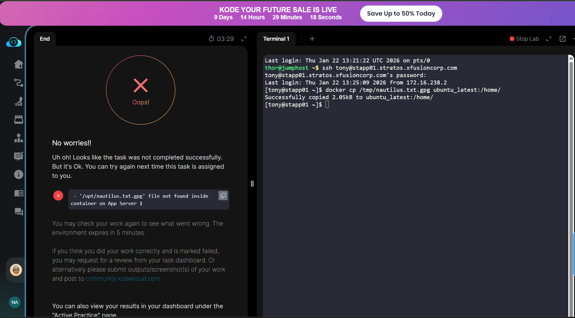 I think you need to copy the file to /opt/, but you have copied it to /home/