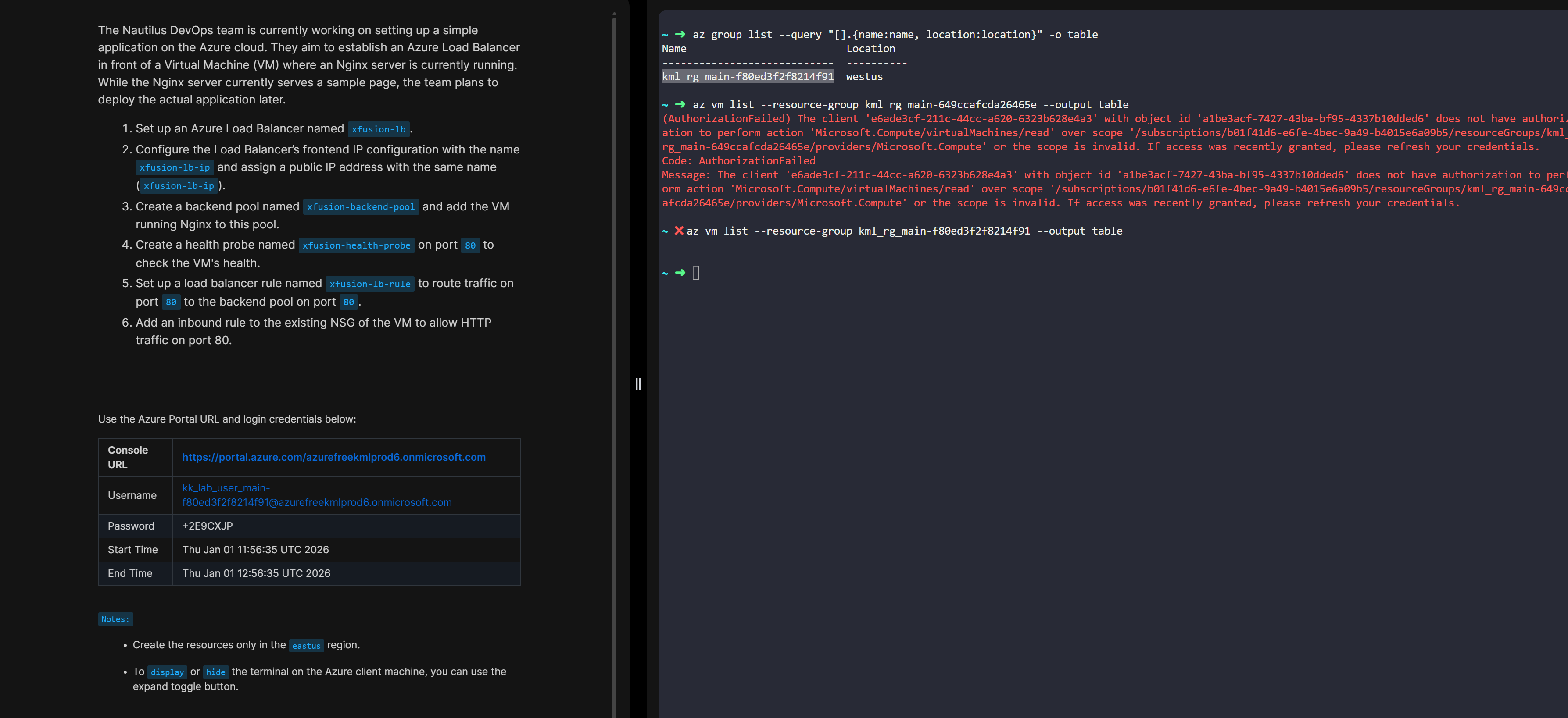 Dear team, Course Name: KodeKloud Engineer Level: 100 days of cloud(Azure) Issue: Frontend Nginx VM not available