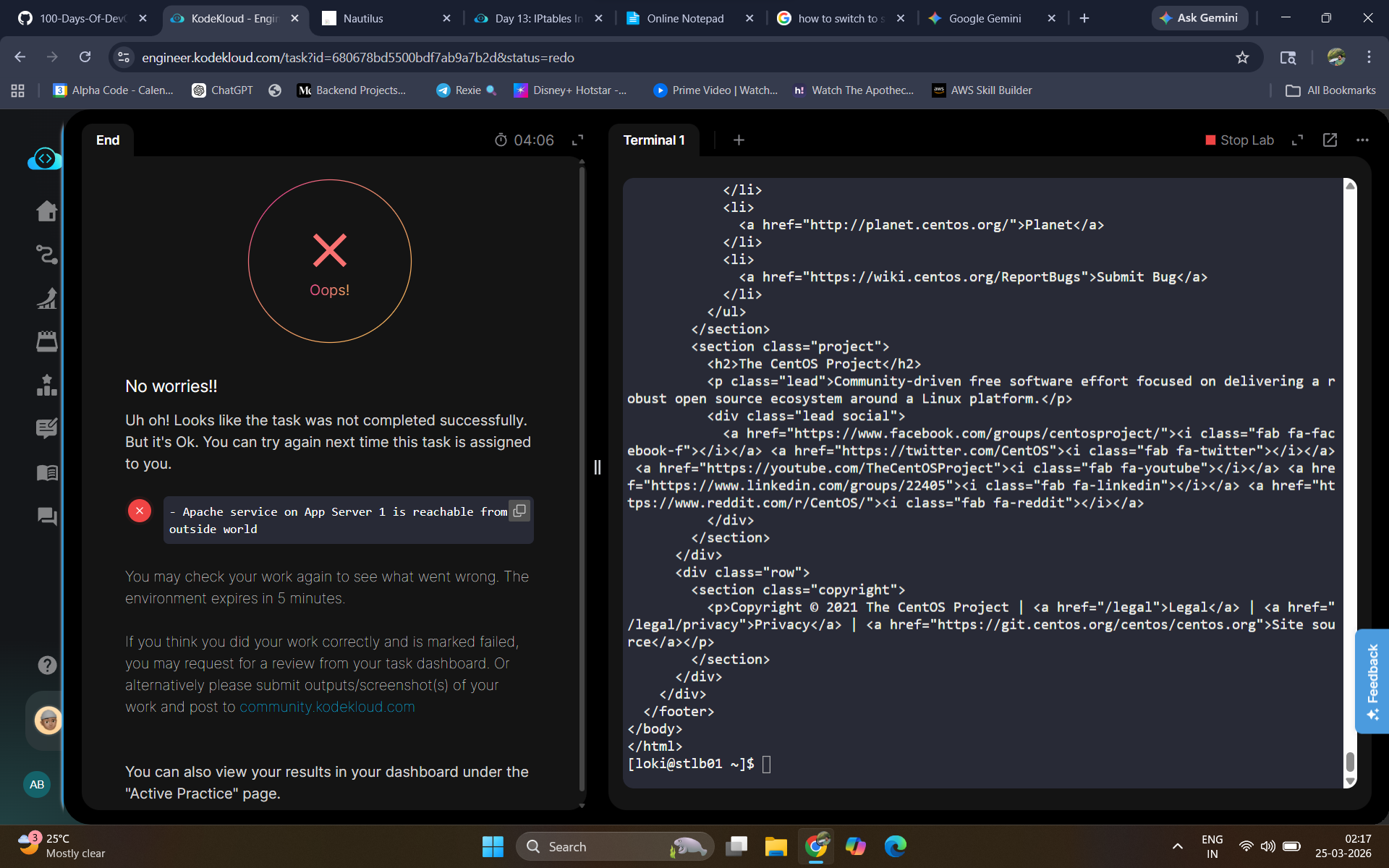 I am able to curl http://stapp01:6400 from Load balance server but in the task I am getting error