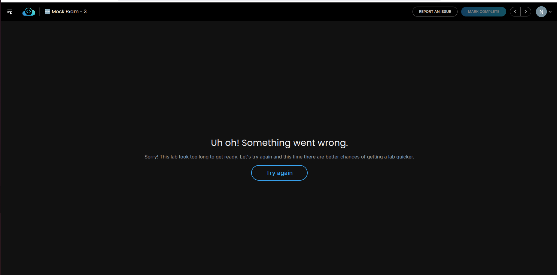 After I complete one lab or mock exam, I am often unable to open any other labs afterward. The platform either does not load the lab at all or gets stuck, making it impossible to continue. This issue has been happening frequently recently and is significantly affecting my preparation.