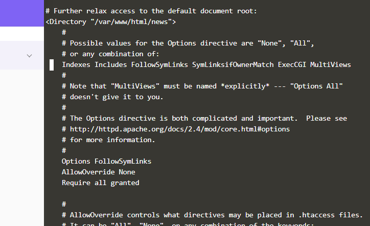 Also crate a .htaccess file in the same directoyr as /var/ww/html/