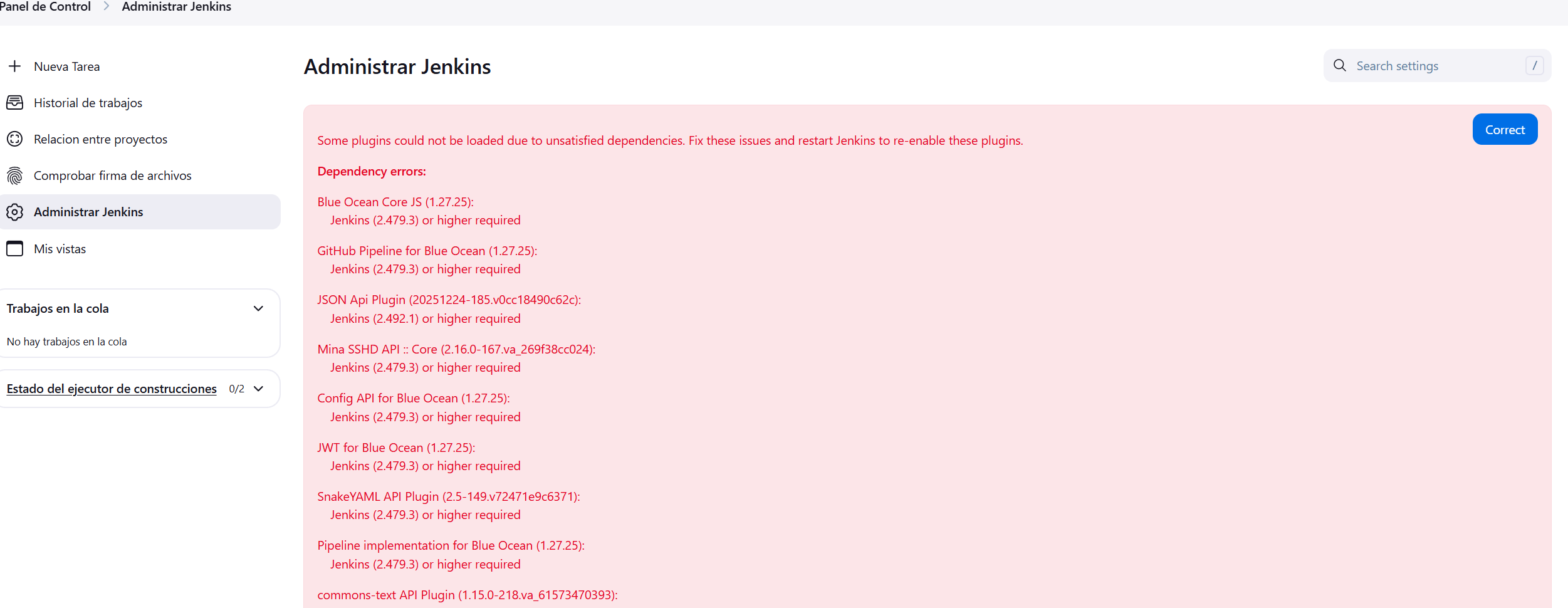 The issue is that the Jenkins version is too old and the plugins are not valid.