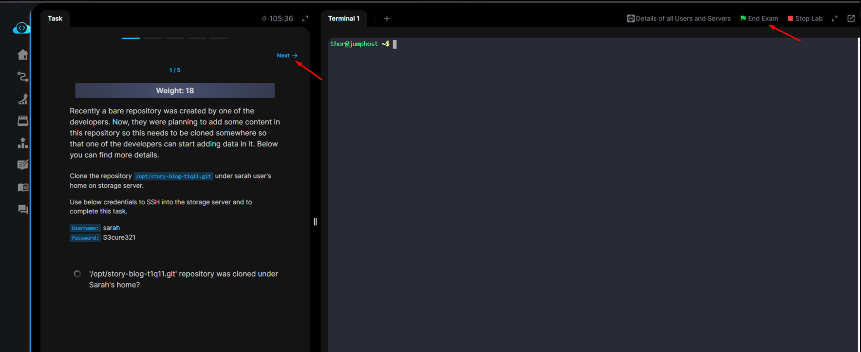This is an exam where you need to complete all the questions and then click the End Exam button to submit and verify them.