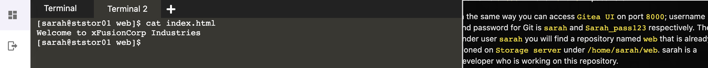 ( which is case sensitive ). Configure these stages as per details mentioned below.- a. The `Deploy stage` should `deploy` the code from `web` repository under `/data` on `Storage Server`, as this location is already `mounted` to the document root `/var/www/html` of all app servers. - b. The `Test stage` should test your latest changes if deployed correctly. Its `up to you how you design this stage` to test your changes, you `can` simply add a `curl` command as well to run a `curl against the LBR URL` to see if your latest pushed changes are visible on the website. `Make sure this stage fails in case the changes mentioned in this question aren't deployed correctly` or `if Deploy stage fails`.