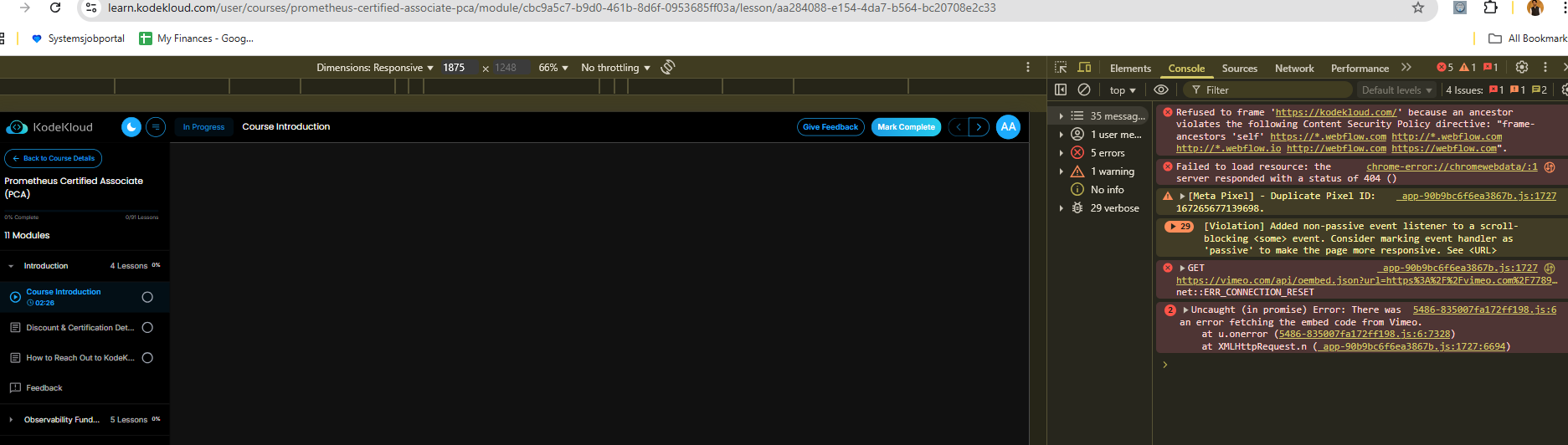KodeKloud Course Videos Not Loading