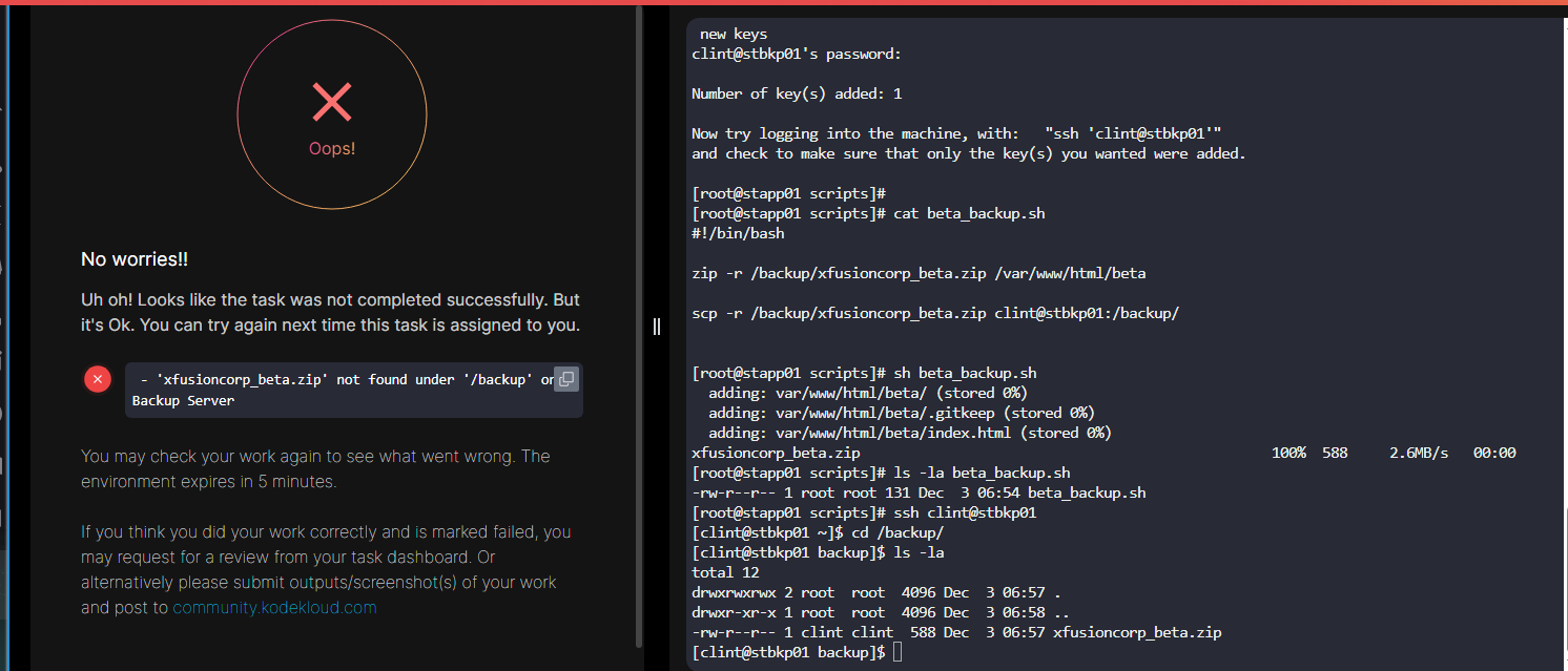 There seems a bug in the lab 10. I have correctly wrote script yet I got an error that there is no file create under backup location of backup server.