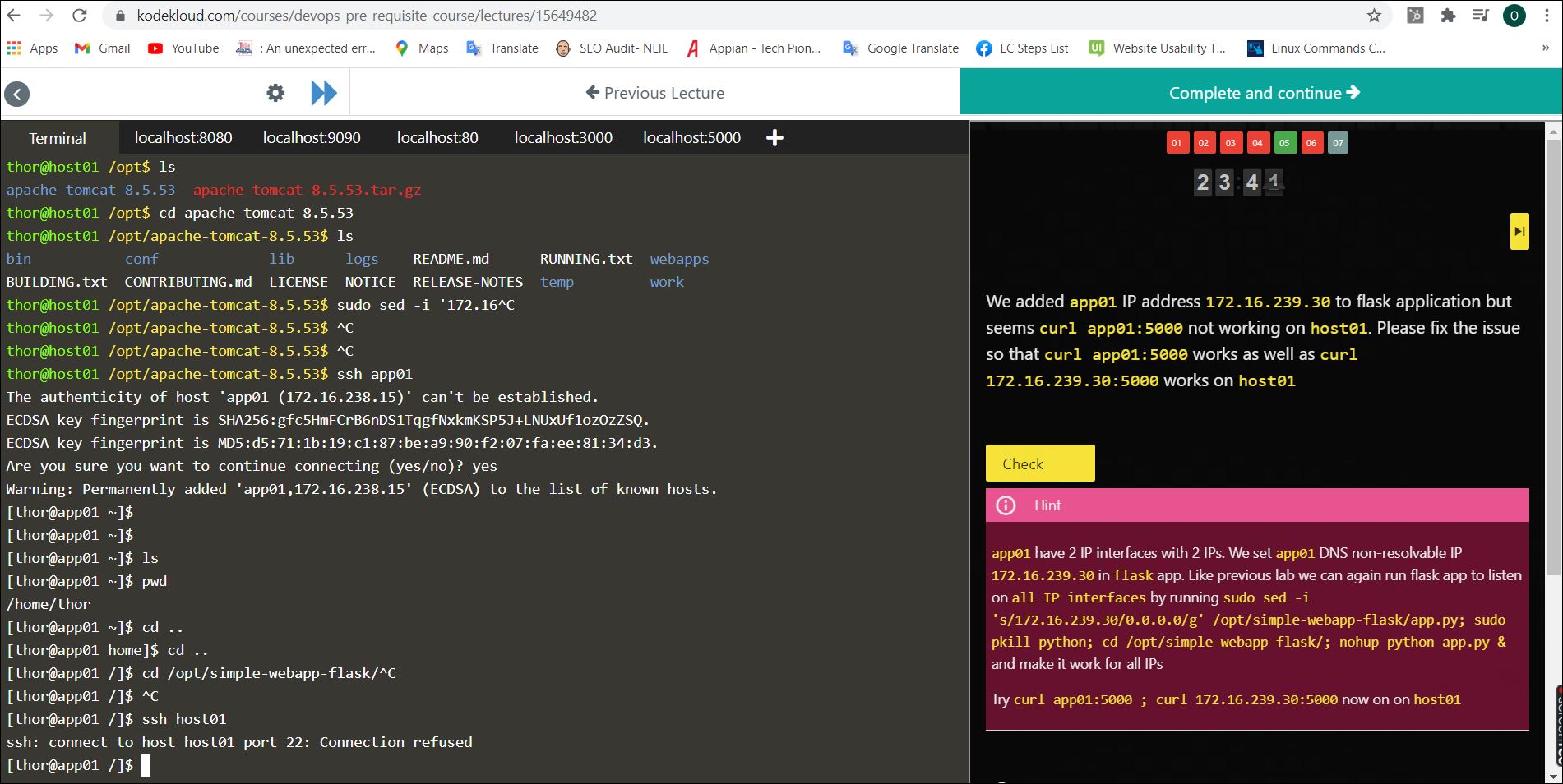 Hi, yes from host01 we can ssh to app01 . But from app01 it asks password and most of the time permission denied for port 22. For your support please as many time we have to switch between the hosts for lab tasks