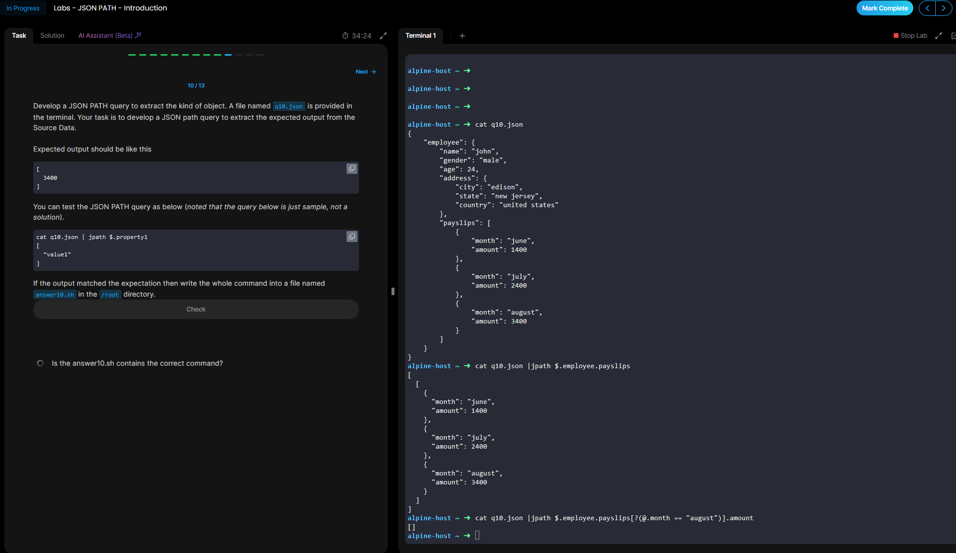 I am trying to solve a couple of exercises with what is shown and taught in the previous video lesson “Introduction to JSON PATH”, but I cannot make it work.