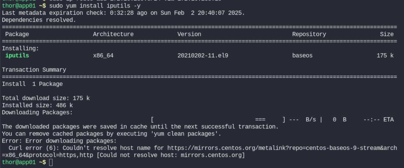 Hey, this issue were not fixed for me. The ping command is still not available on app01, and I tried to install it with sudo yum install iputils -y but got the error below. Couldn’t finish this lab either.