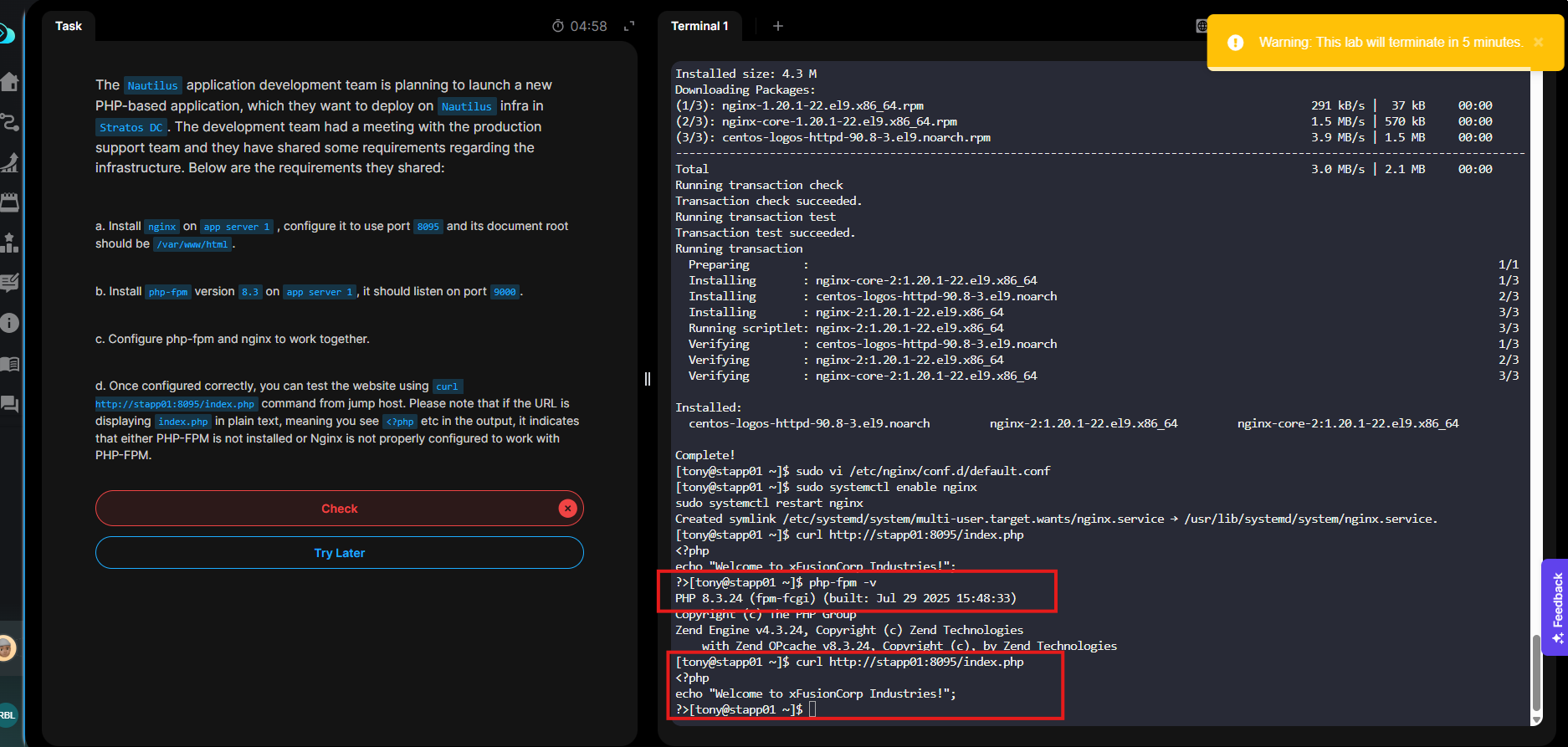 chown nginx:nginx /var/www/html/index.php