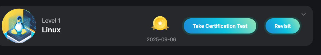 After I completed all 18 tasks in the Linux Level 1 curriculum, I expected to take a final test to earn the badge. However, as soon as I closed the lab session for the final task, the badge was automatically assigned to me without me needing to take the test.