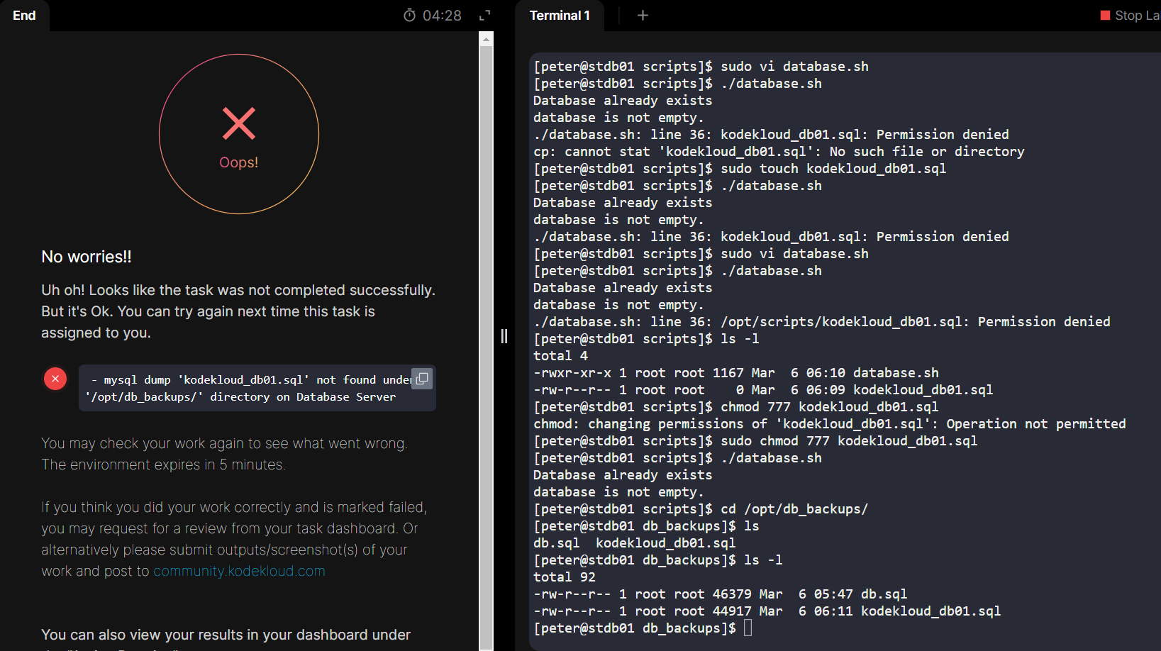 task getting failed even though the dump file is under /opt/db_backups. please see attached screenshot.