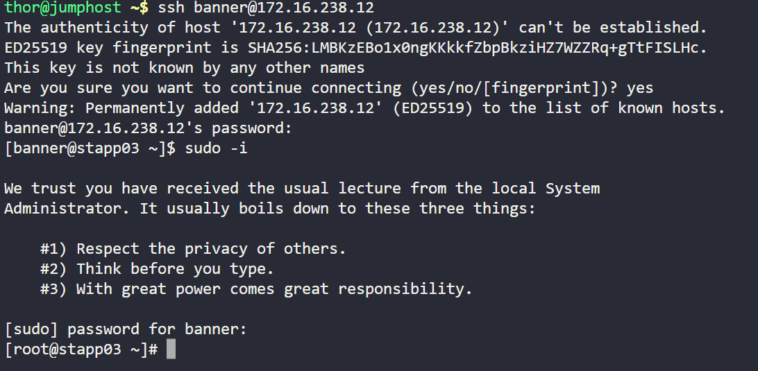I am facing an issue while trying to log in to the server 172.16.238.12 using the user ‘banner’. Upon attempting to connect via SSH, I receive the following message: