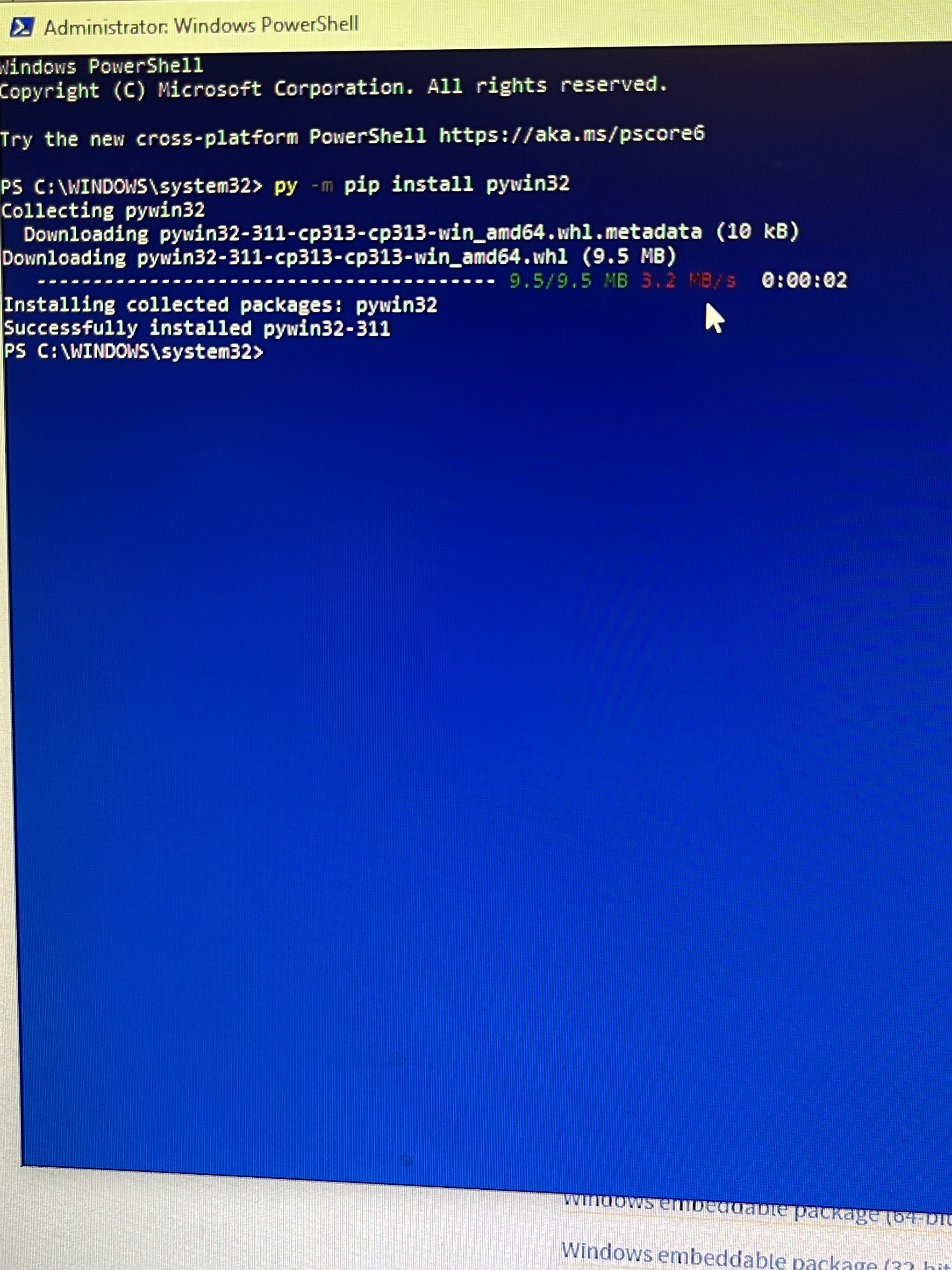 python.exe -m pip install --upgrade pip - remember to press enter key after copypasting each line & wait for execution & download