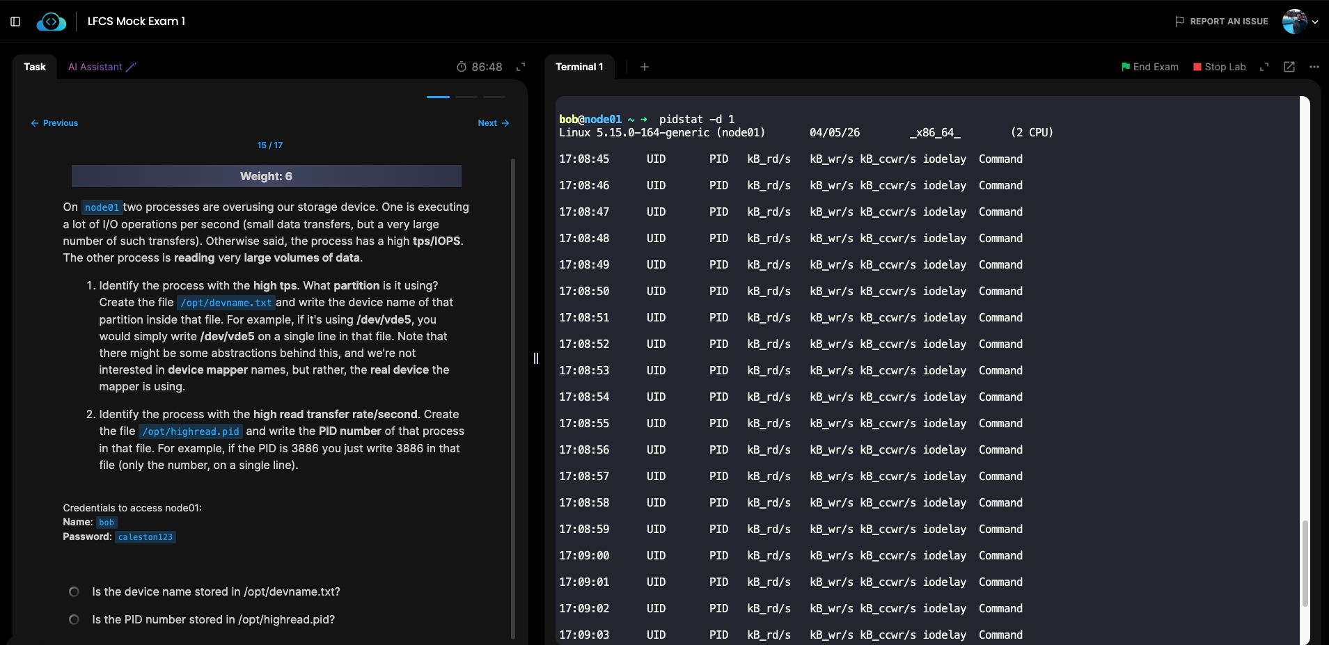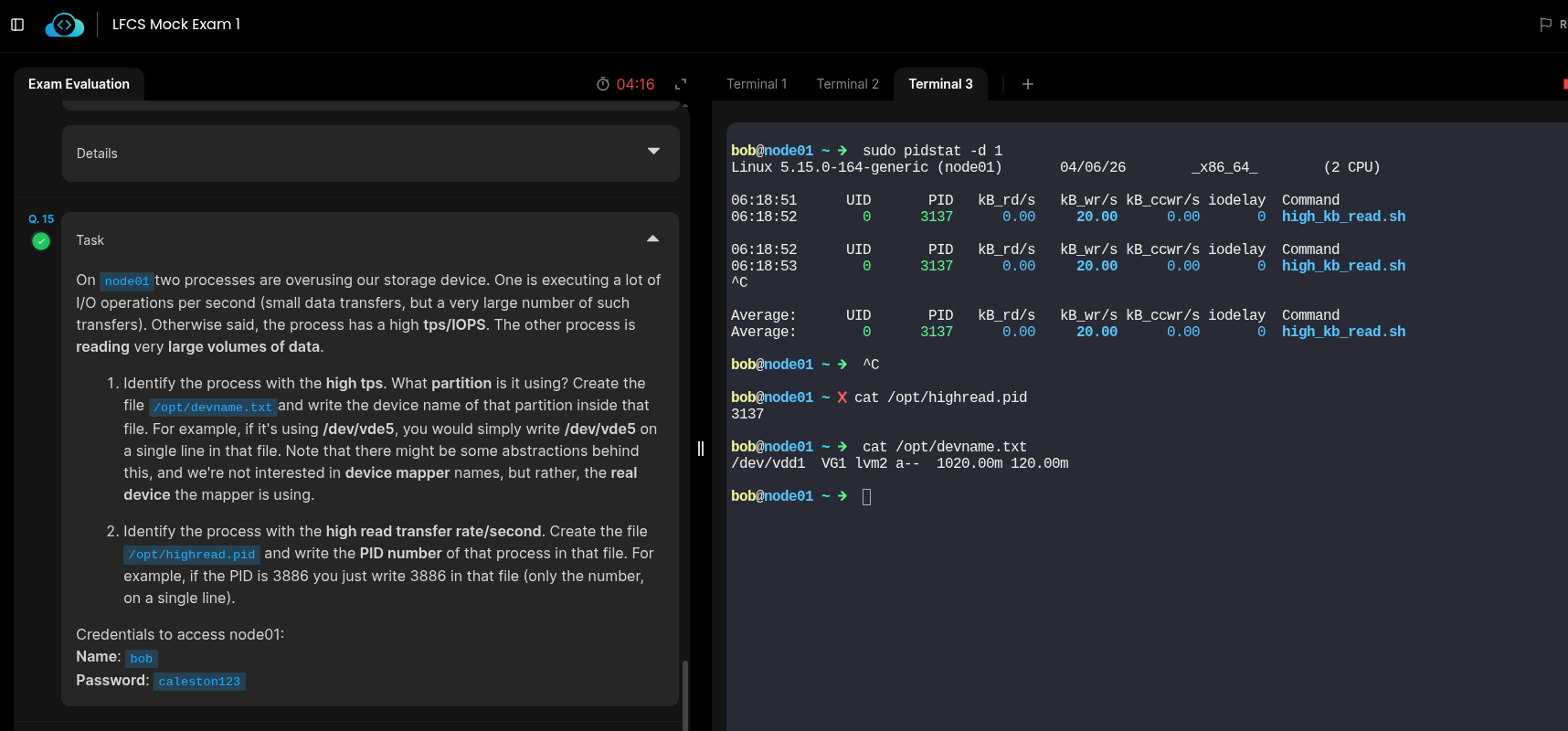 I tried following the solution and used pidstat -d 1 for the 2nd task. It worked with the output stored in files.