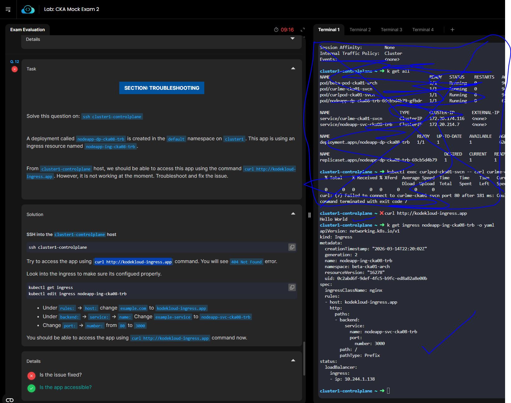 One thing to try is that, while editing the ingress resource, make the necessary changes. Delete the .status block, ensuring the updated configuration is fully processed and applied, and a new Ingress is created.