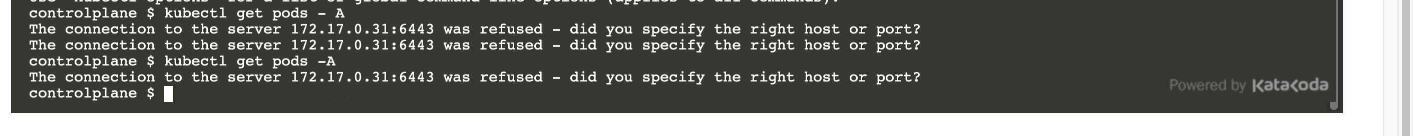 the lab loads after 10 mins and when I run kubectl get pods command it is not able to connect to kube-api server