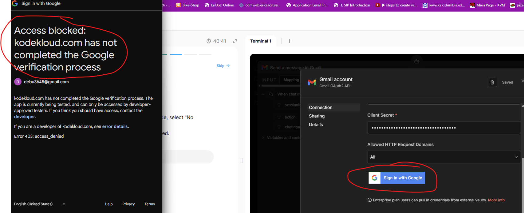 Hi, I am trying to practice lab1 of n8n course. When trying to configure OAuth2 for “gmail tool”. it always fails with the below access denied issue. Exactly same steps as mentioned in the lab instructions were followed however the same issue persists. Tried this 5times in different days but same result. Need you assistance