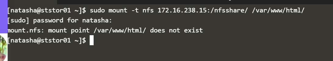 Another thing to note, make sure you are performing these commands on the client side (stapp01,02,03) not on the (server side ststor01).