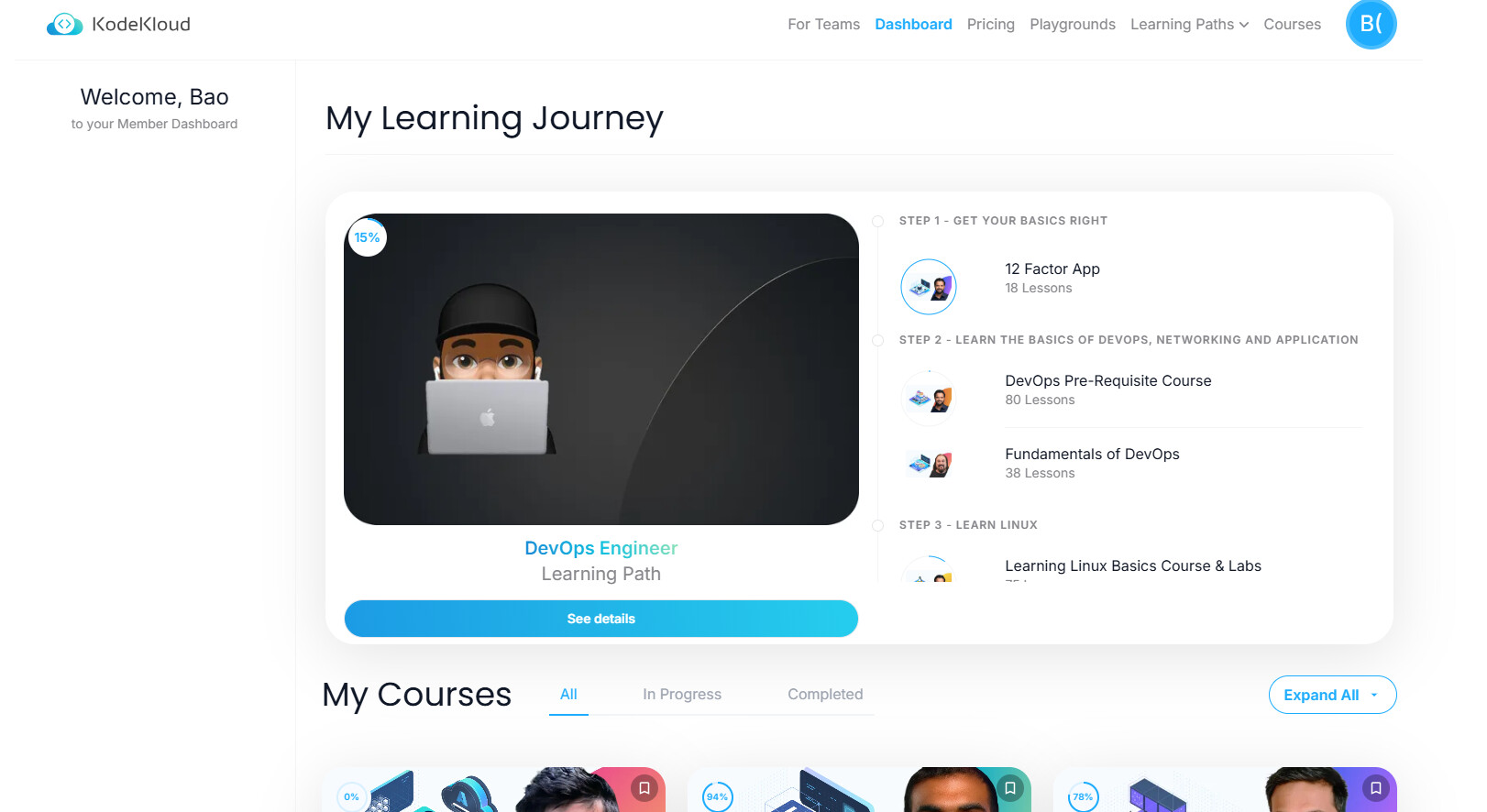 Thanks for sharing the screenshot. I’ve double-checked it and it seems that the Learning Path shown on the user dashboard is based on the most recently enrolled course. I tested it and was able to switch from the DevOps Learning Path to Cloud Engineer by going to the Learning Path page and enrolling in a course there.